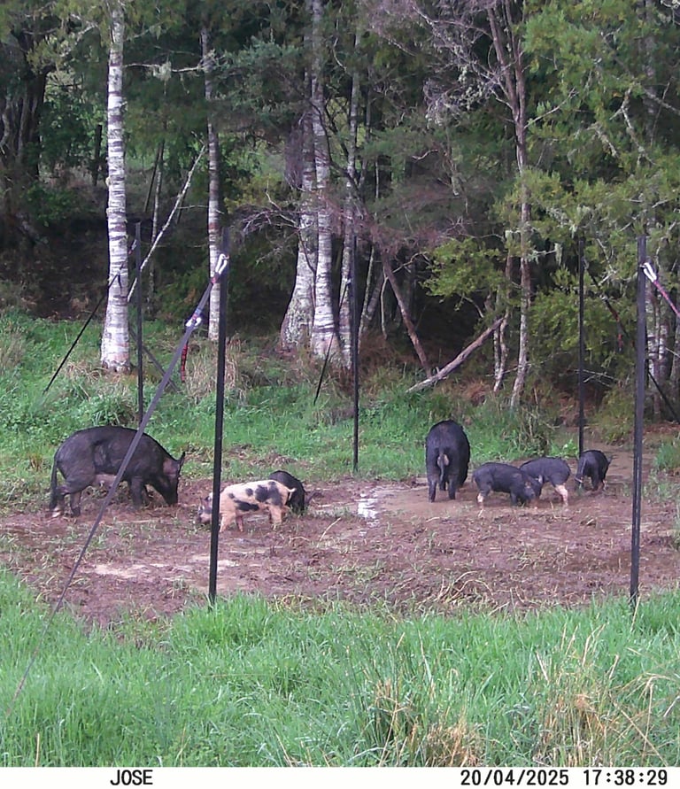 Feral pigs can be very damaging to the environment both from a conservation and farm productivity view point. With the rise of "carbon farming forests" connectivity across the landscape is increasing for feral pigs allowing them to move more freely and access more areas of suitable habitat. Increasingly farmers, forest managers and large land owners will have to find cost effective ways to manage feral pig numbers. Based in Northland, we have experience in managing feral pigs on private land for conservation purposes. Over recent years we have developed some methods for our own use that have proved effective, and are now looking to help others with their feral pig problems.